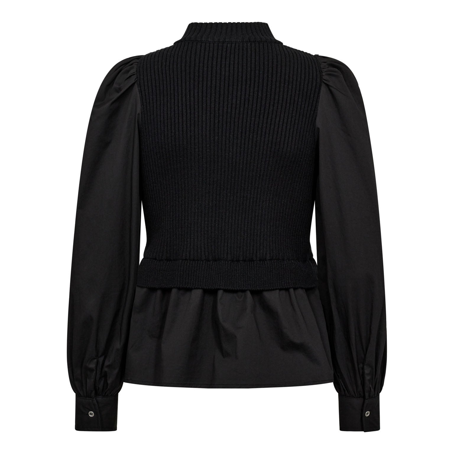 De top heeft een ribgebreid lijfje met rits, ballonmouwen en een licht uitlopende onderkant die elegant om het lichaam valt. Gemaakt van 80% viscose en 20% polyamide voor een zachte feel en comfortabel draaggemak. Een eigentijds item dat zowel casual als chic te stylen is.