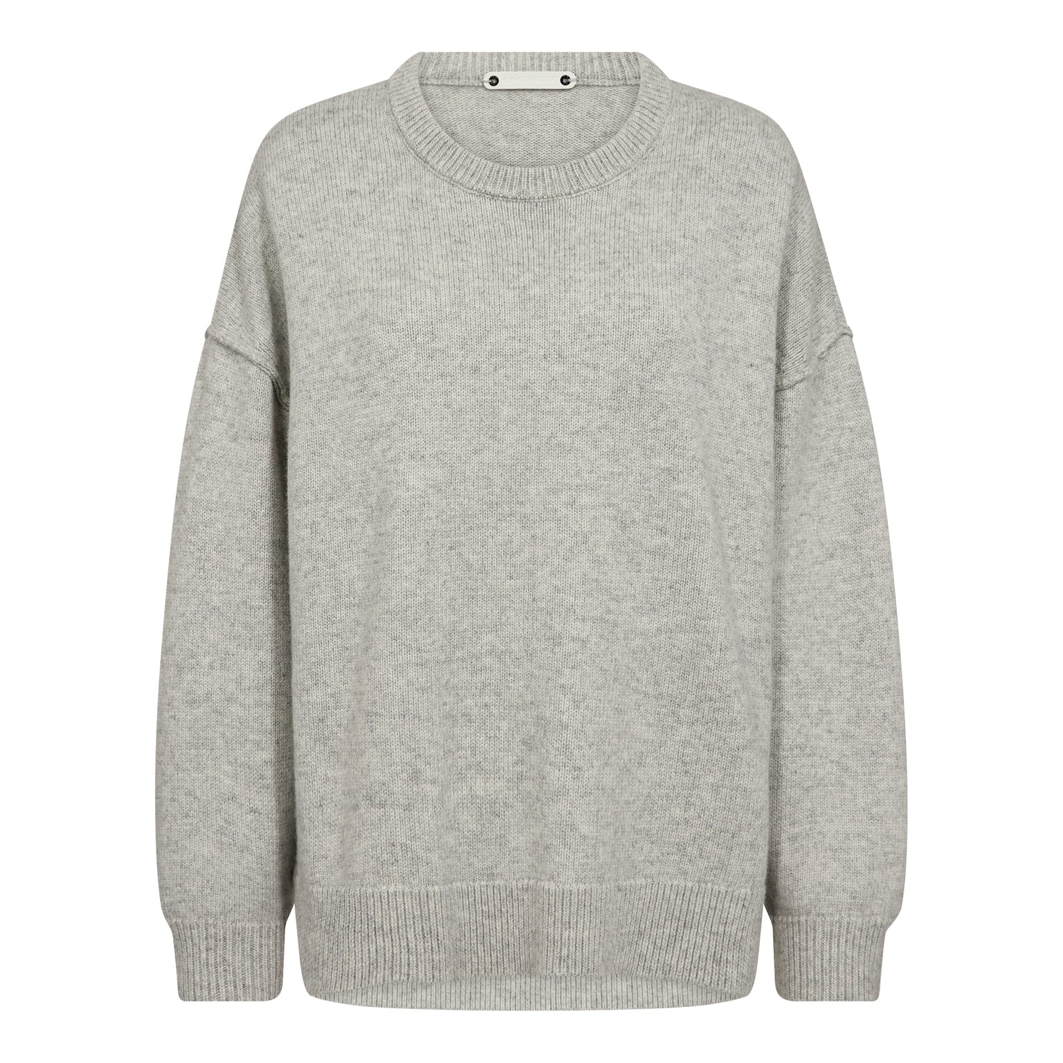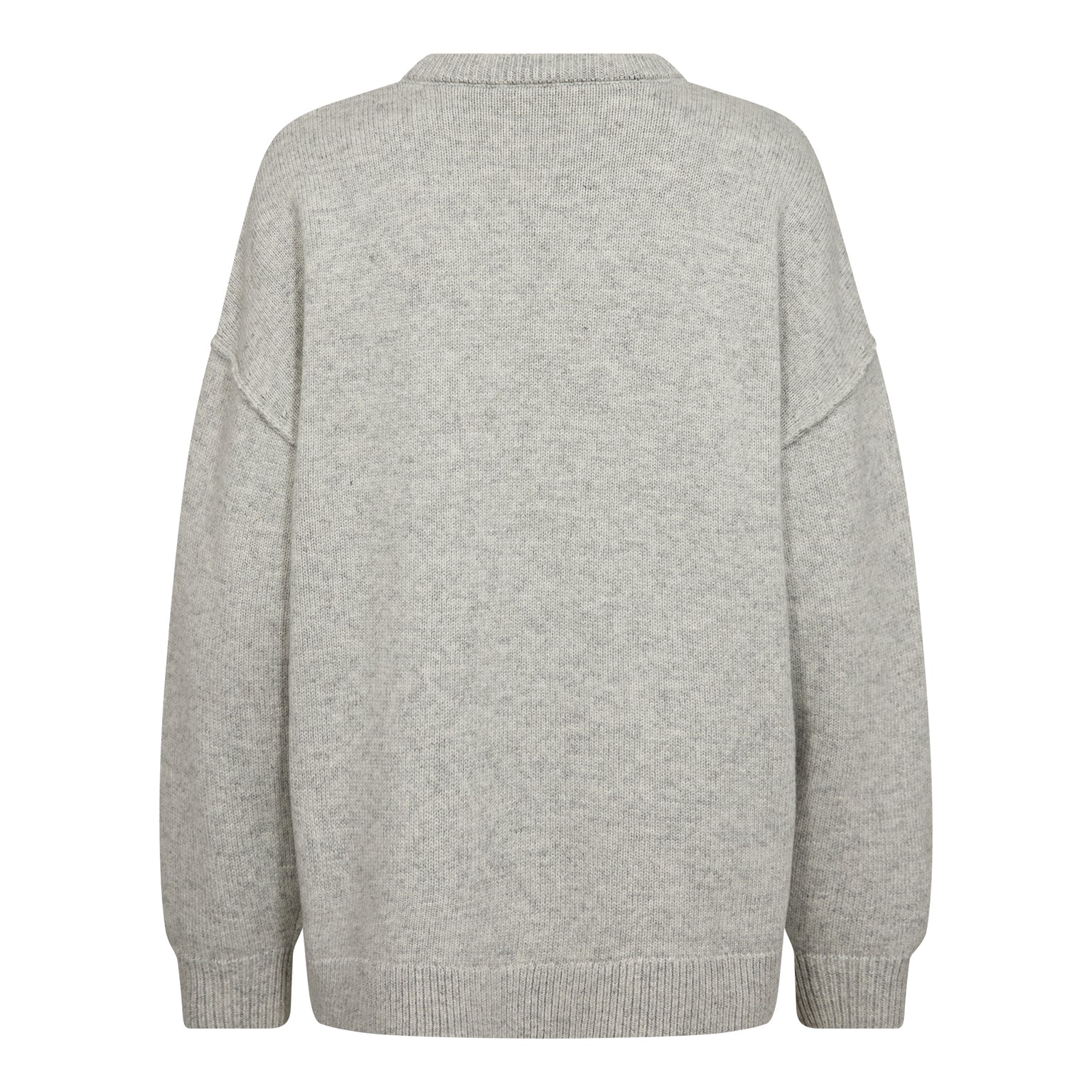 Zachte gebreide trui met een oversized pasvorm en verlaagde schoudernaden voor een nonchalante, moderne look. De trui is afgewerkt met geribde boorden aan de hals, mouwen en zoom. Gemaakt van een comfortabele wolmix met 53% polyamide, 32% wol en 15% acryl. De lichte grijs tint (Light Grey 138) geeft een tijdloze, veelzijdige uitstraling.