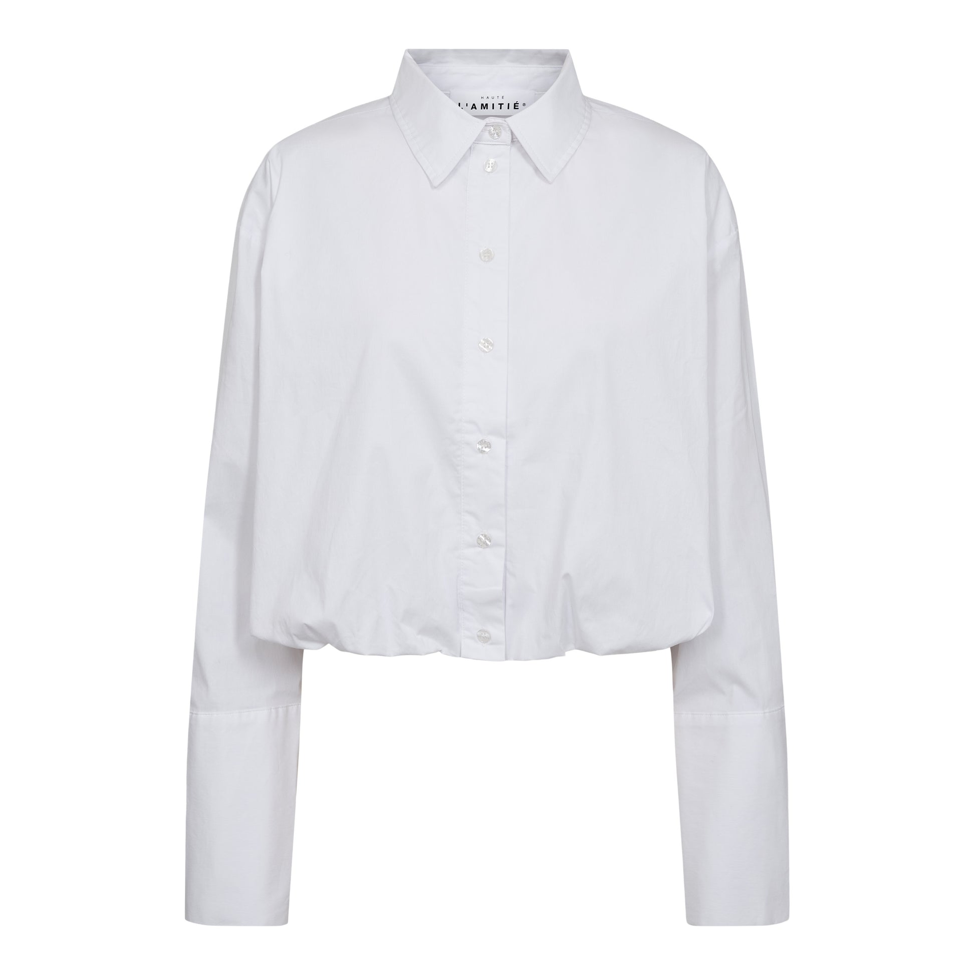 Gemaakt van een luxe mix van 65% katoen, 32% polyamide en 3% elastaan. De ballonvormige mouwen met brede manchetten geven het ontwerp een eigentijdse, volumineuze uitstraling, terwijl de cropped snit zorgt voor een elegantie.