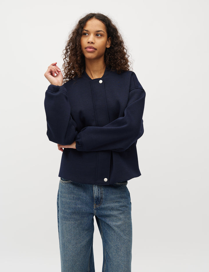 Bomberjack van zachte kwaliteit met een relaxte fit. Voorzien van schuine zijzakken en een sluiting met rits en knopen. Comfortabel én stijlvol! Materiaal: 85% polyester, 15% viscose
