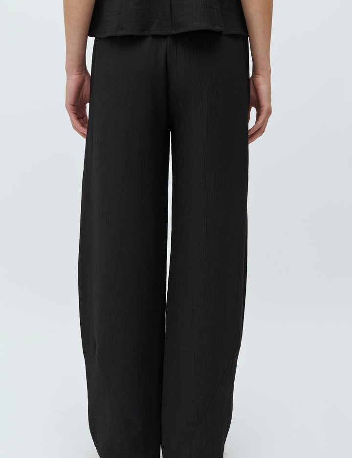 Comfortabele broek met een moderne barrel fit en een losse, relaxte uitstraling. Voorzien van praktische zijzakken en een elastische tailleband voor extra draagcomfort en een moeiteloze pasvorm. Gemaakt van een soepele stofmix van 79% viscose, 13% polyamide (nylon) en 8% polyester voor een mooie valling. Perfect te combineren als co-ord set met de Kaely-M blouse voor een stijlvolle look.