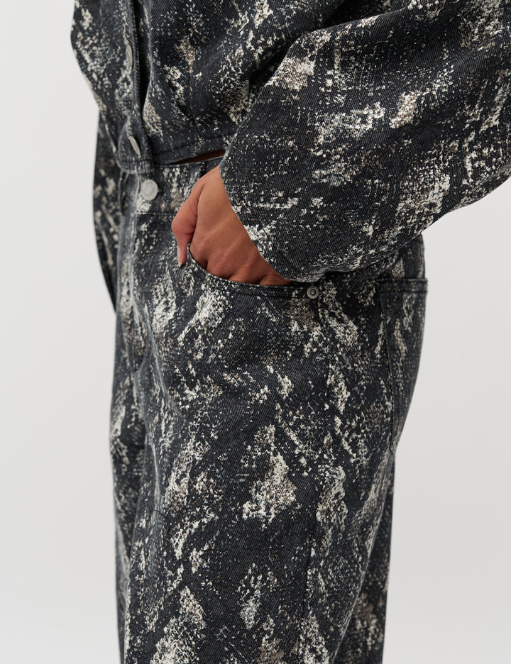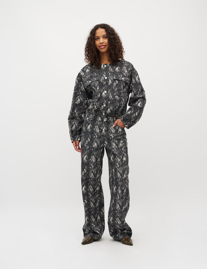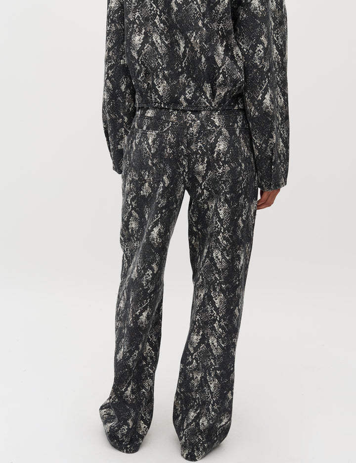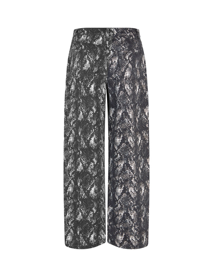 Statement broek met wijde pijpen in een opvallende snake print. Gemaakt van 100% katoen voor een comfortabele fit en ademend draagcomfort. Perfect te combineren met het Genevive-M jasje in dezelfde print voor een complete co-ord look.