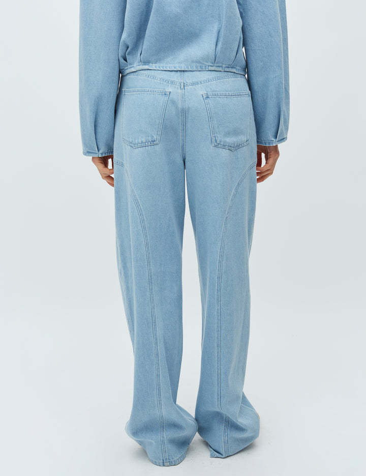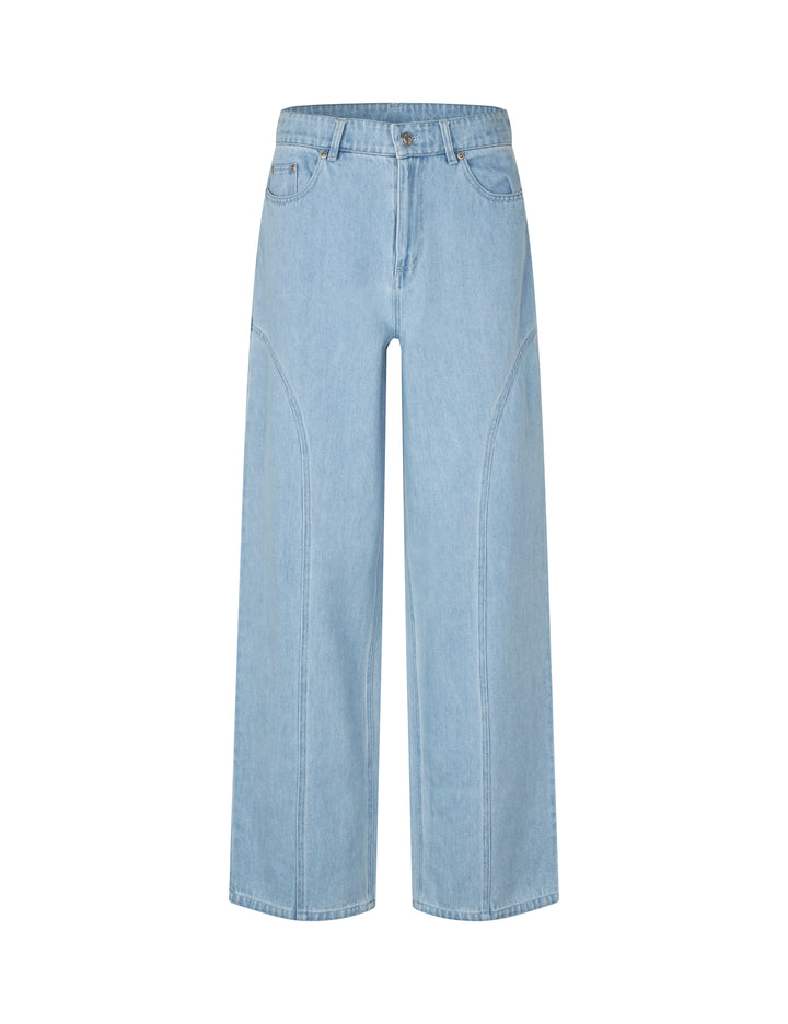 Stijlvolle jeans met verfijnde snijlijnen voor een moderne en elegante uitstraling. De broek heeft wijde pijpen en een middelhoge taille voor een comfortabele en flatterende pasvorm. Voorzien van riemlussen en uitgevoerd in een zachte light soft wash tint voor een frisse denim look. Gemaakt van 90% katoen en 10% polyester voor stevigheid met een prettige draagcomfort. Combineer met de Roselind-M blouse als co-ord set voor een perfect afgestemde outfit.