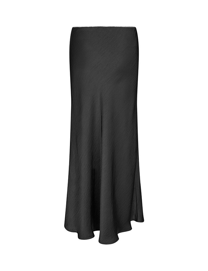 Deze elegante maxi-rok van satijn straalt tijdloze klasse uit en voelt luxueus zacht aan op de huid. De rok is gemaakt van 98% polyester en 2% elastaan, wat zorgt voor een soepele, licht glanzende stof met een comfortabele stretch. Dankzij de elastische tailleband sluit de rok mooi aan en valt de rok langs het lichaam.