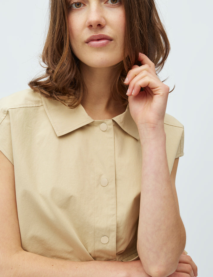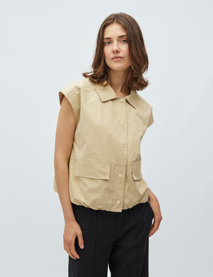 Matis-M is een cropped boyfriend waistcoat met een moderne, nonchalante uitstraling. Het vest heeft een losse pasvorm, korte mouwen en praktische opgestikte zakken aan de voorkant. De knoopsluiting en elastische zoom zorgen voor een eigentijdse afwerking en een comfortabele fit. Uitgevoerd in de kleur safari en gemaakt van 100% katoen aan de buitenkant, met een gladde voering van 100% polyester voor extra draagcomfort.