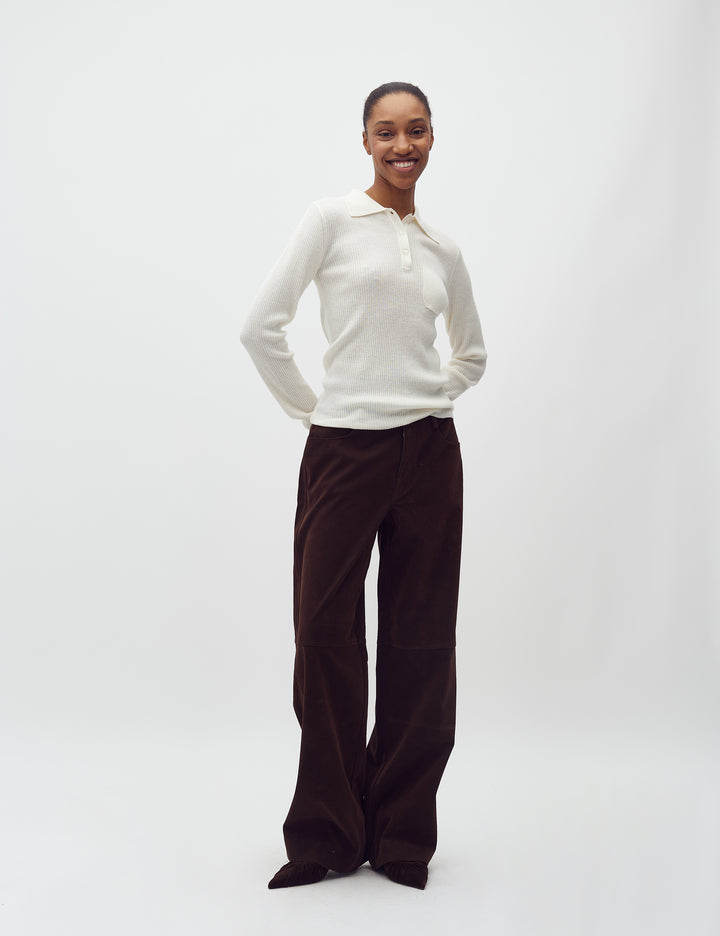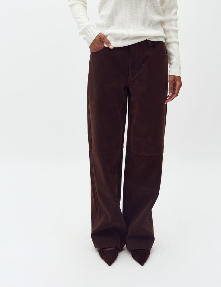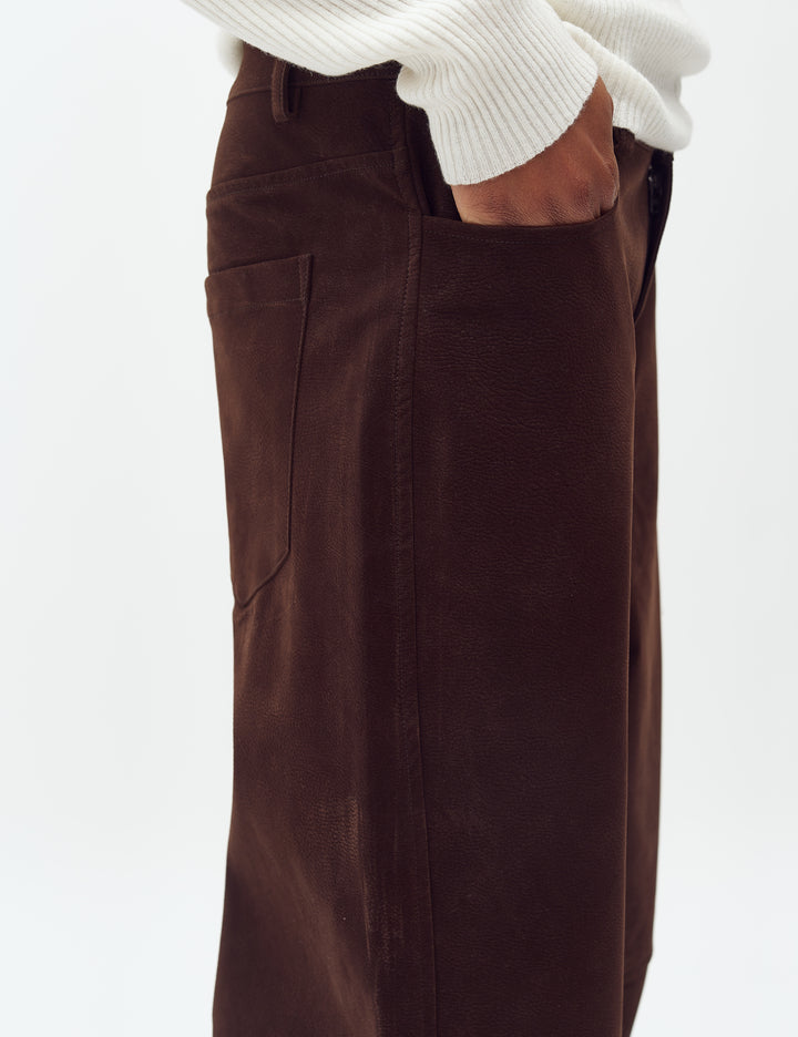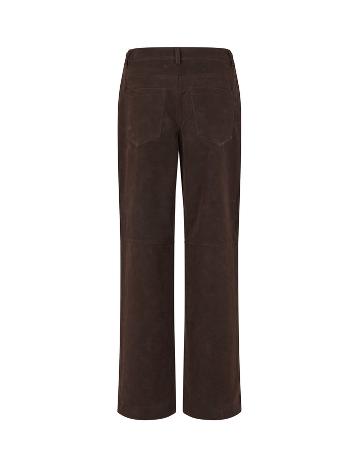 Deze elegante wide leg broek in de kleur Java is uitgevoerd in een luxe kwaliteit. Het model heeft een relaxte, rechte pasvorm met subtiele paneldetails en zakken aan de voor- en achterkant. De soepele stofmix van 55% viscose en 45% polyurethaan zorgt voor een rijke textuur en een comfortabele fit.