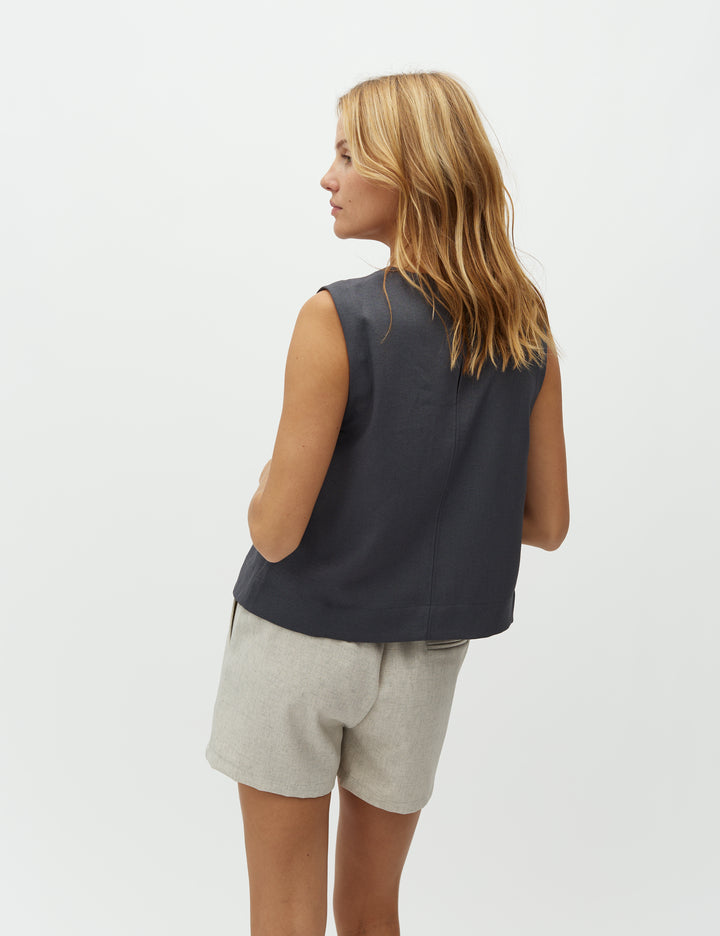De Tytus-M top heeft een minimalistisch en modern ontwerp met een mouwloos silhouet en een rechte, comfortabele pasvorm. Gemaakt van een luchtige mix van 85% polyester, 12% linnen en 3% elastaan. Perfect te combineren met de bijpassende Asaka-M pant voor een stijlvolle set.