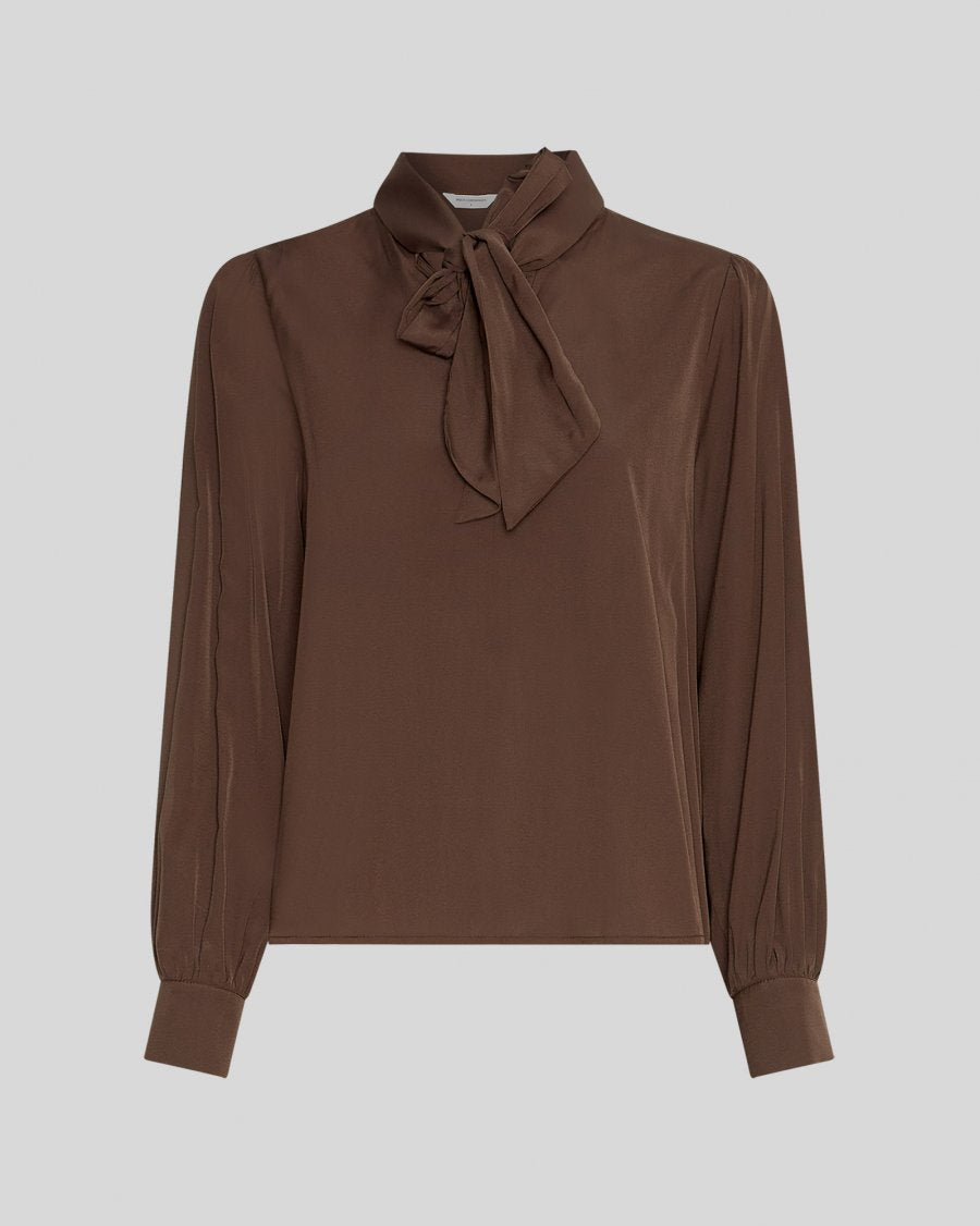Deze elegante top met lange mouwen biedt een perfecte balans tussen comfort, stijl en duurzaamheid. De regular fit zorgt voor een flatterend silhouet dat de taille mooi accentueert, terwijl het strikdetail een vrouwelijke en verfijnde touch toevoegt. Gemaakt van 60% gerecycled polyester en 40% viscose, voelt de stof licht en zacht aan, maar behoudt tegelijkertijd een mooie structuur. Dankzij de GRS-certificering is deze top een bewuste en verantwoorde keuze. Draag haar met een blazer voor een verzorgde kantoorlook of combineer met een rok voor een stijlvolle avondoutfit, een veelzijdig kledingstuk dat in geen garderobe mag ontbreken.