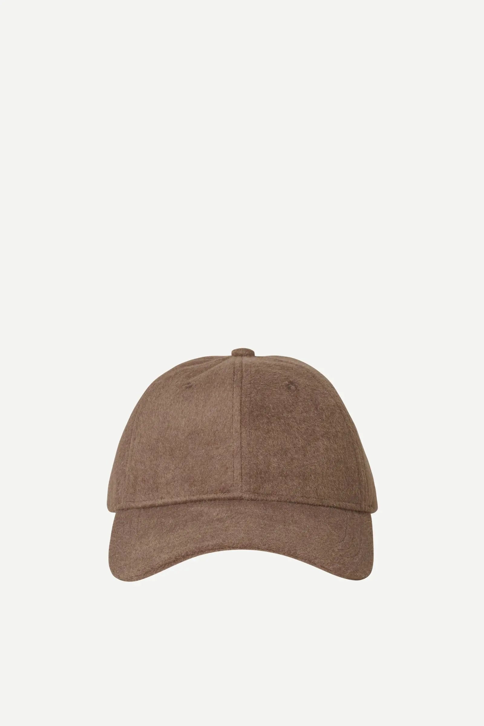 Baseballcap met een regular fit, uitgevoerd in de kleur Canteen. De cap heeft een elastische strap met lus-sluiting aan de achterkant, een zachte katoenen headband aan de binnenzijde en ventilatiegaatjes bovenop. Achterop is subtiel het Samsøe Samsøe logo geborduurd. De voering is gemaakt van 100% katoenen twill, terwijl de buitenkant bestaat uit een zachte wolblend voor een moderne, hoogwaardige uitstraling.
