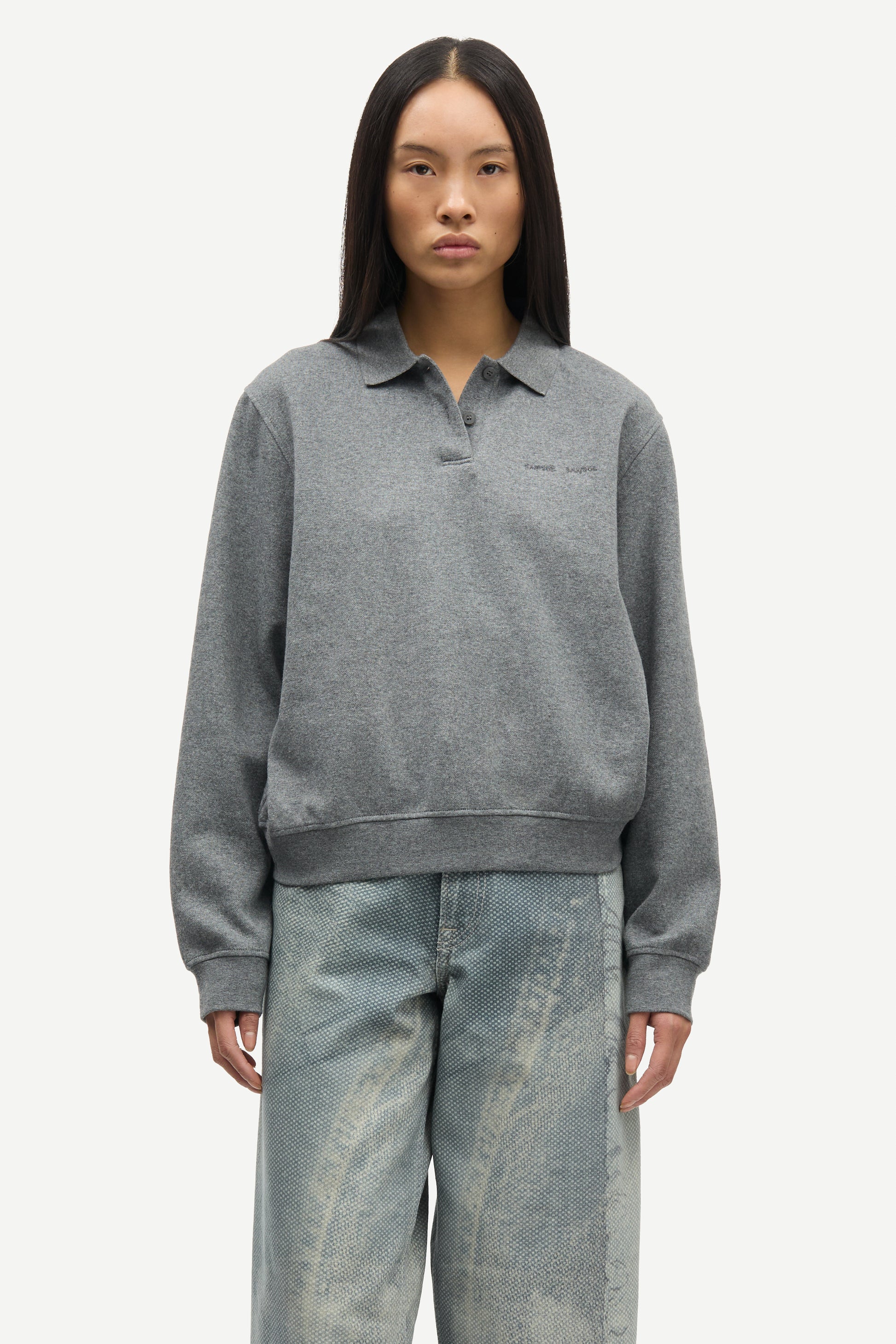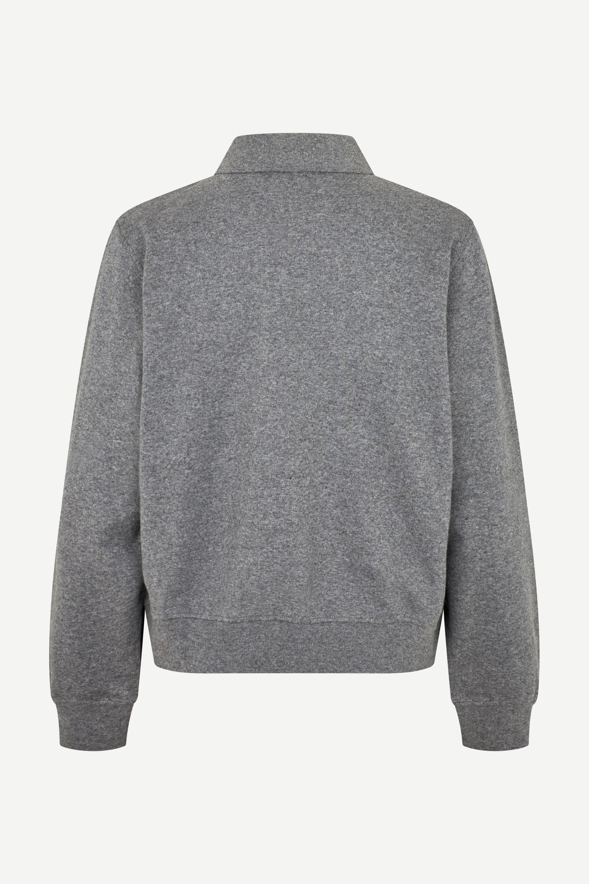 Deze grijze polo sweater combineert de klassieke look van een polo met het comfort van een trui. Gemaakt van 100% biologisch katoen, voelt de stof zacht aan en is ademend, duurzaam en comfortabel voor elke dag. De sweater heeft een relaxte pasvorm met een polokraag, knoopsluiting en subtiel logo op de borst. Perfect te dragen bij een jeans of pantalon voor een moeiteloos stijlvolle, casual look.