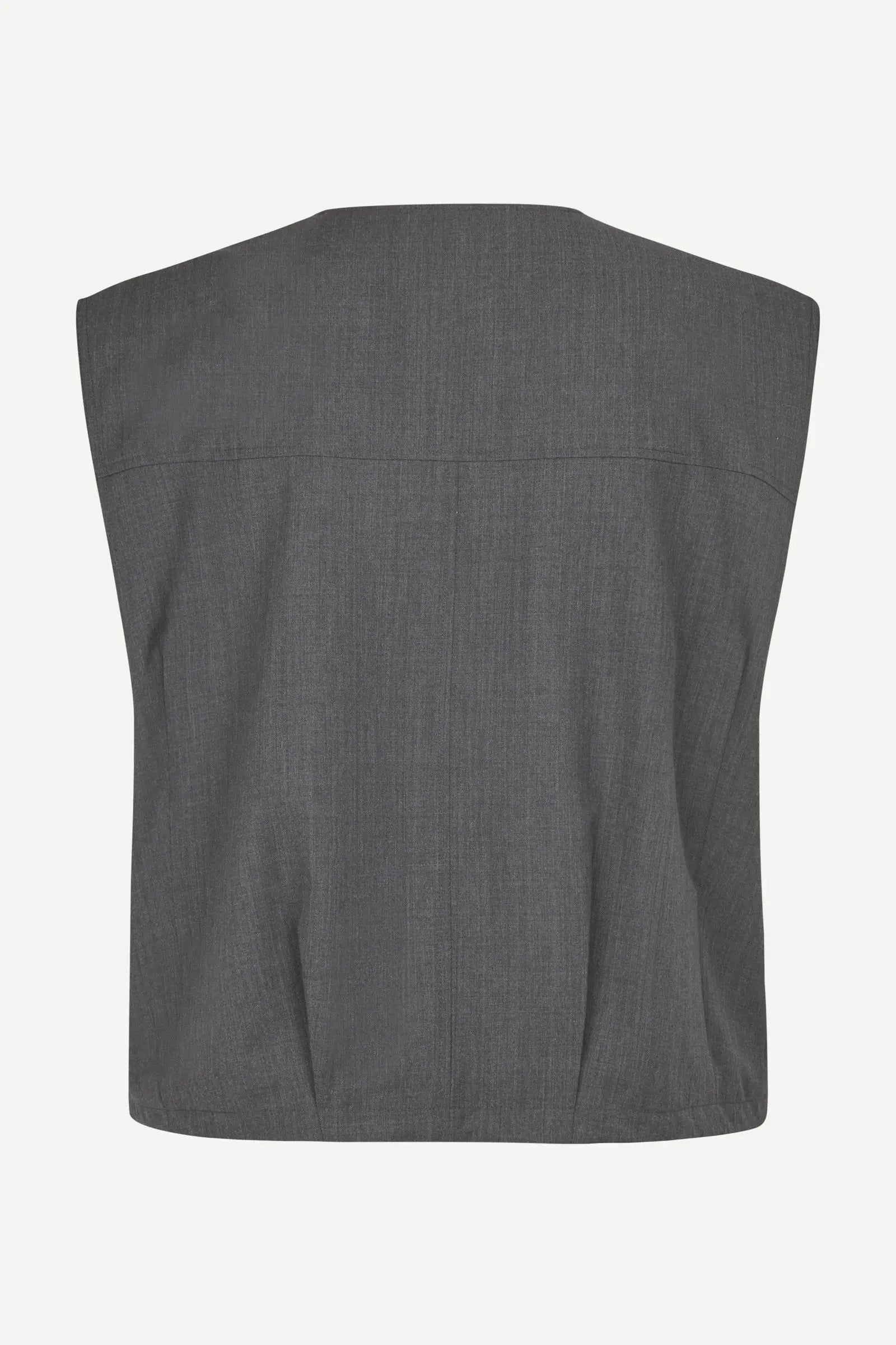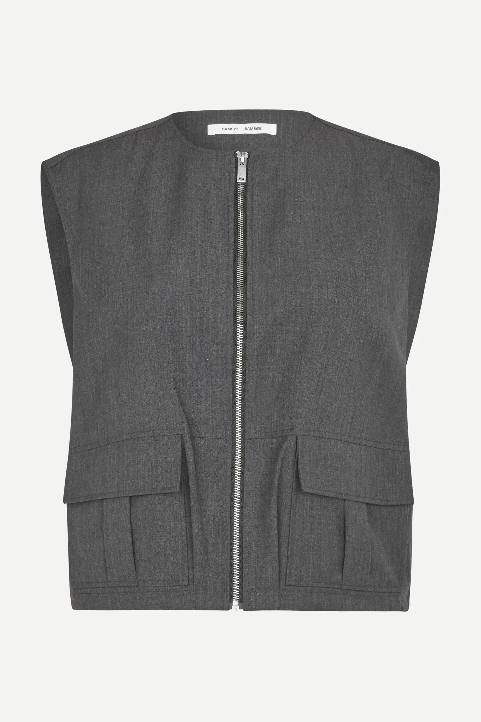 Vest met een oversized pasvorm en ritssluiting aan de voorkant. Voorzien van klepzakken op de borst en een trekkoord in de zoom voor een verstelbare fit. Het vest is volledig gevoerd voor extra comfort en een luxe afwerking. Gemaakt van een hoogwaardige wolblend met 55% gerecycled polyester en 45% wol, met een zachte voering van 52% polyester en 48% viscose.