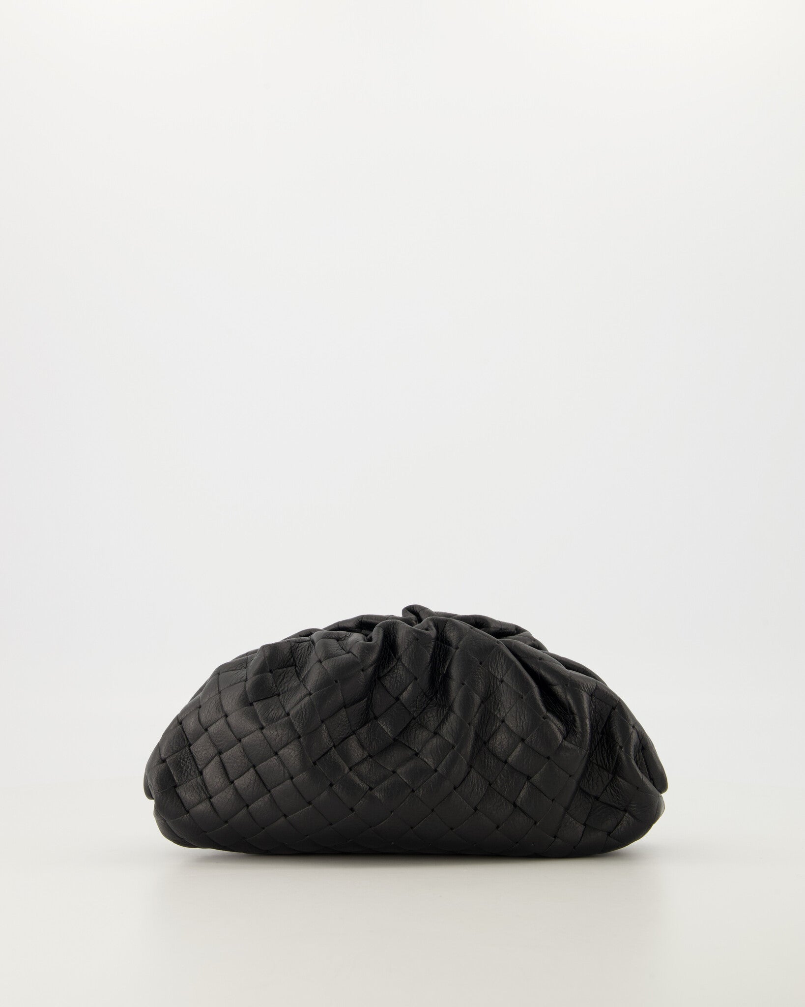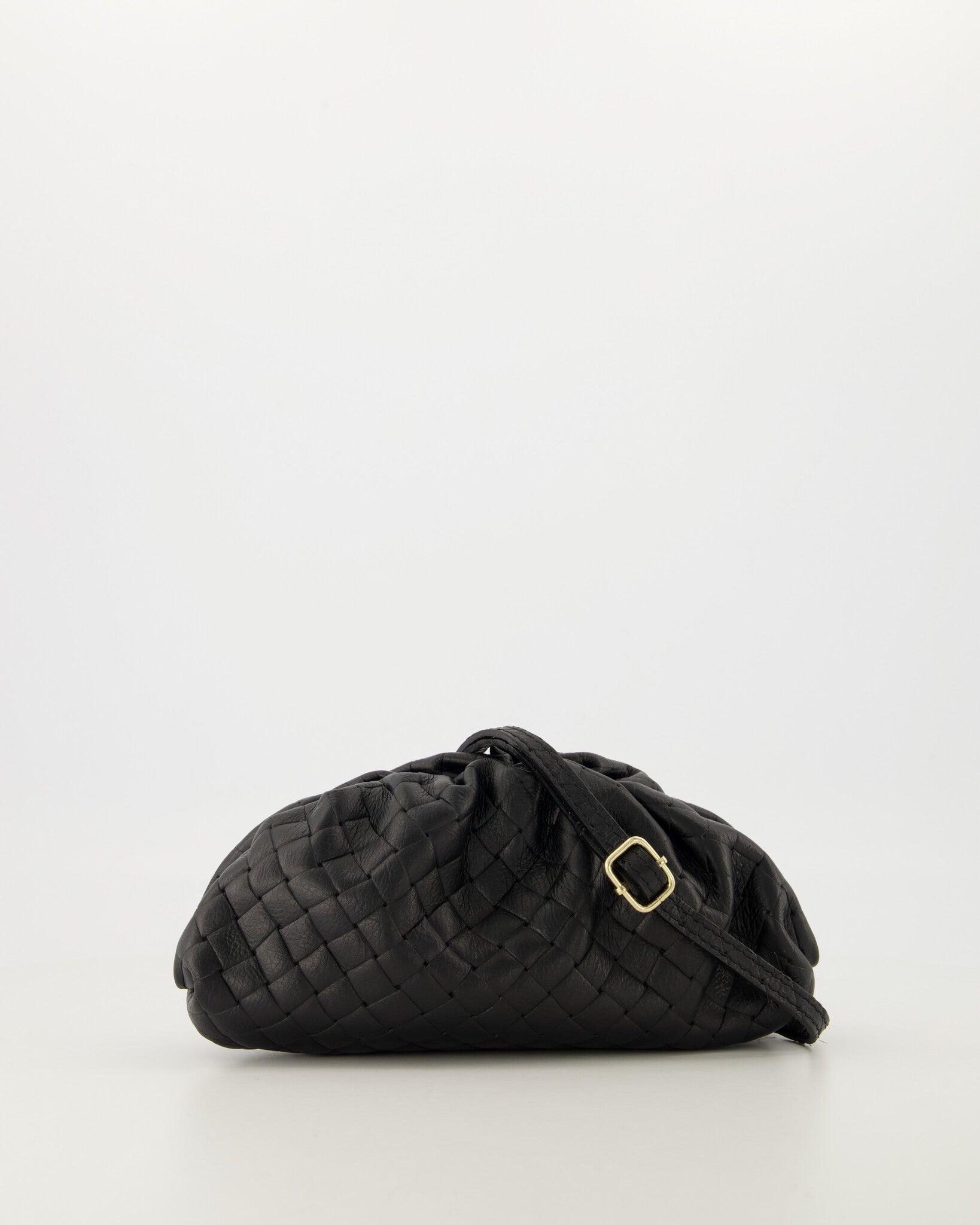 Deze stijlvolle avondtas is gemaakt van hoogwaardig leer met een verfijnde woven grain-structuur, wat haar een luxueuze uitstraling geeft. Dankzij het afneembare en verstelbare leren hengsel draag je Maud moeiteloos als chique clutch in de hand of als praktische crossbodytas. De magneetsluiting zorgt voor een elegante afwerking, terwijl het vakje met ritssluiting binnenin je essentials veilig opbergt. De goudkleurige hardware vormt een prachtig contrast met het diepe zwart en maakt van Maud de perfecte accessoire voor zowel feestelijke als casual gelegenheden. Formaat: 22 x 11 x 6 cm.