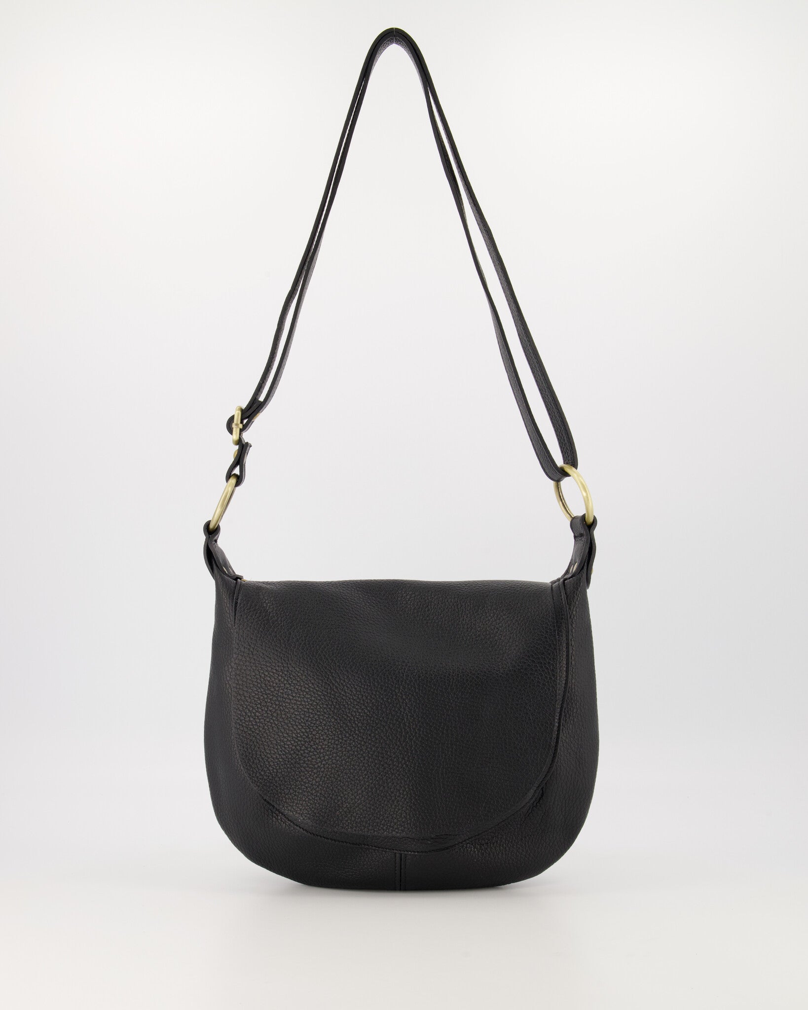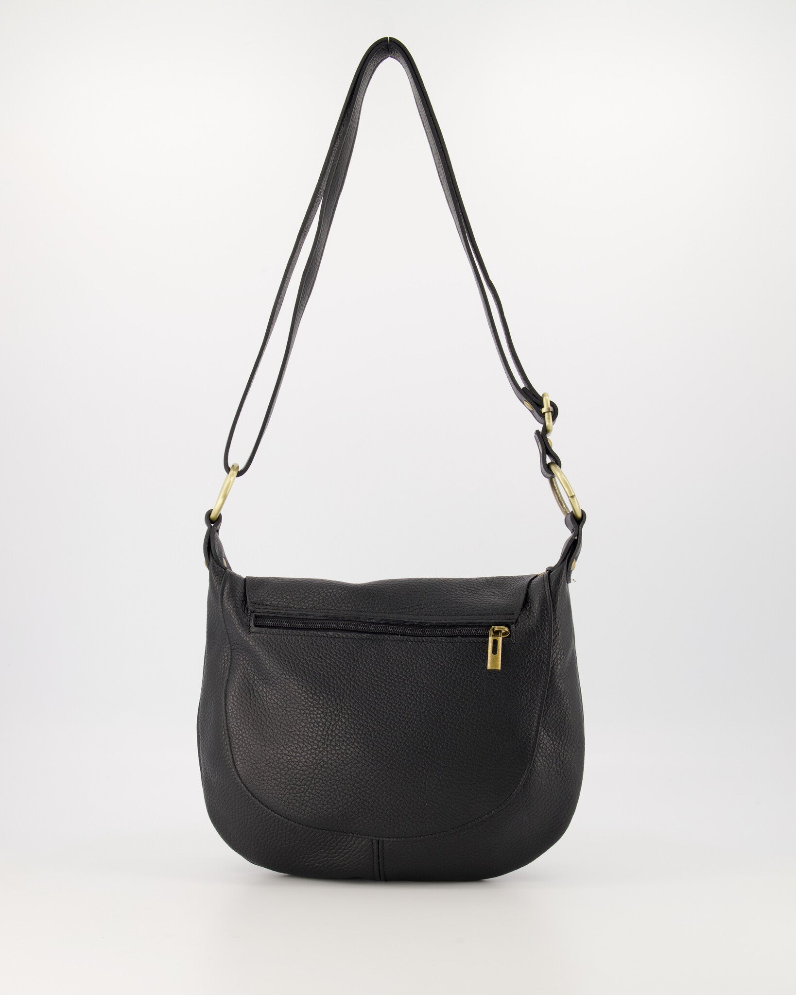 De tas heeft een lang verstelbare hengsel en een ruim hoofdvak met extra rits- en steekvakjes. Afgewerkt met bronskleurige details en uitgevoerd in donkerbruin leer. Afmetingen van 30 x 24 x 5 cm.